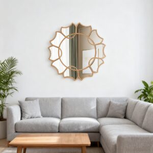 Bohemian Flower-Shaped Wall Mirror, 80cm Round Decorative Mirror with Geometric Frame, Gold/Black Finish, for Living Room/Bedroom/Vanity