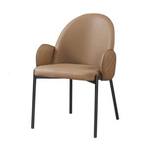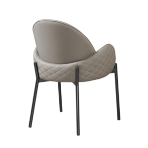 Modern Upholstered Dining Chair, Quilted Leatherette, Ergonomic Backrest, Black Metal Legs