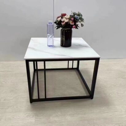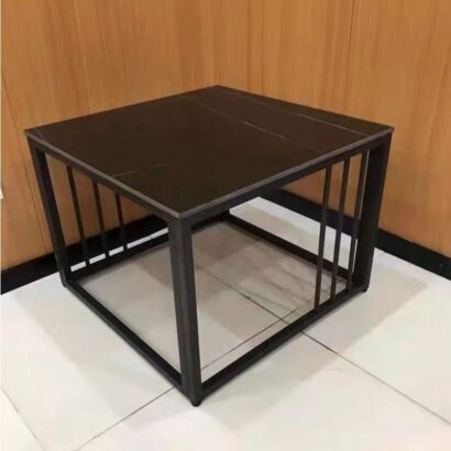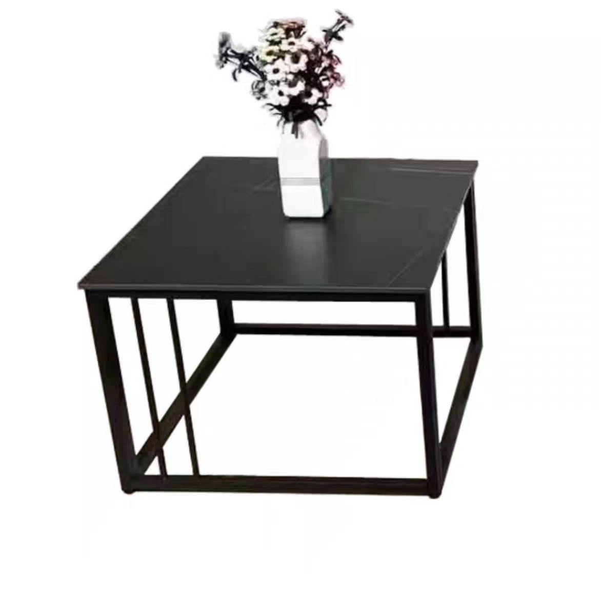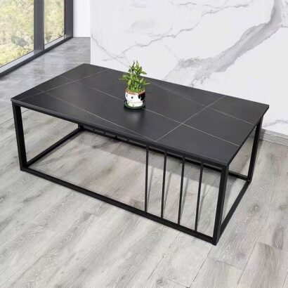 Modern Industrial Coffee Table – 120x70x45CM Faux Slate Tabletop with Iron Frame – Sturdy Living Room Center Table for Contemporary/Minimalist Spaces
